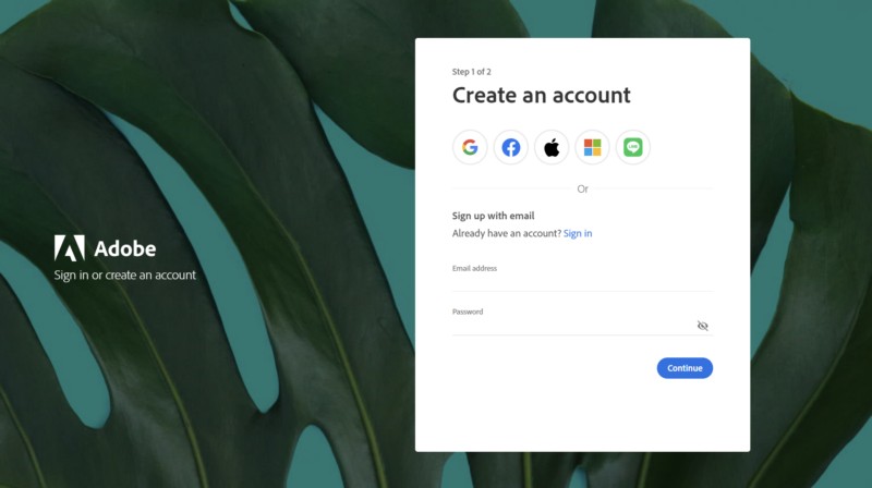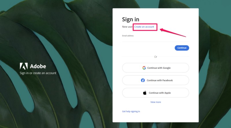 3.現在,使用有效的電子郵件地址到創建您的免費 Adobe Creative Cloud 帳戶。您也可以使用現有的Google,蘋果,Facebook,微軟, 或者線用於創建 Adobe Creative Cloud 帳戶的帳戶。