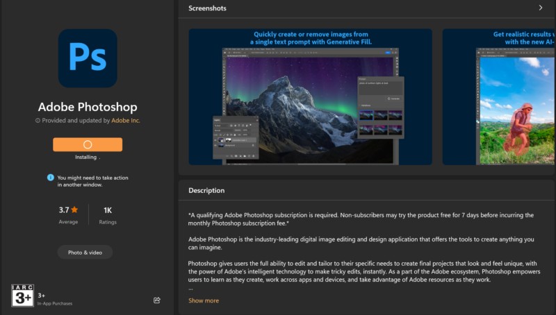 現在,您可以通過 Microsoft Store 在 Windows 11 PC 或筆記本電腦上下載並安裝 Adobe Photoshop 應用程序。不過,值得注意的是,從 Microsoft Store 下載該應用程序並不會安裝 Photoshop 應用程序本身,而是安裝 Adobe Creative Cloud 應用程序。