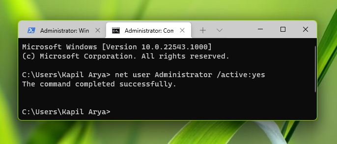 net user Administrator <password> /active:yes在上面的命令中,您需要替換<password>與您要與管理員帳戶一起使用的實際密碼。