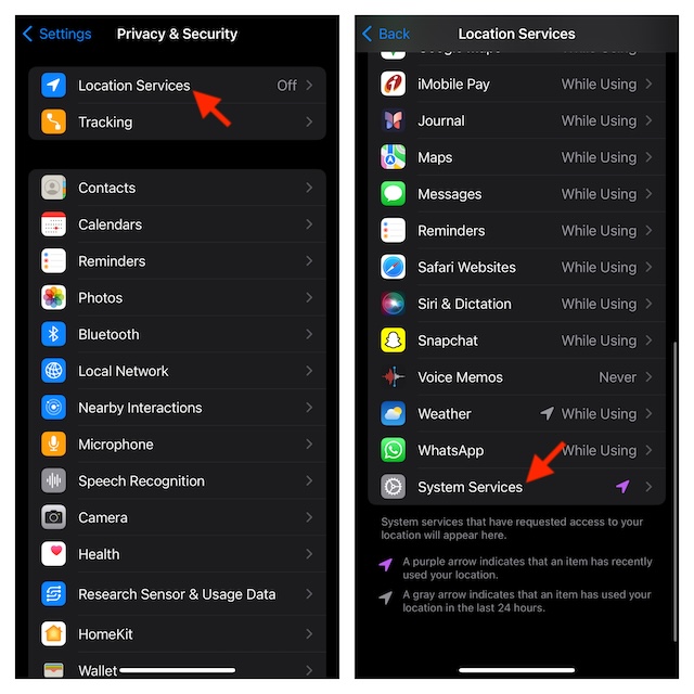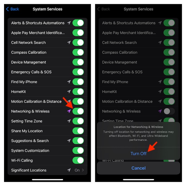 如上所述,一旦您的隱私不受到威脅,請務必打開此重要功能。否則,它將影響設備上 Wi-Fi 和藍牙的性能。稍後,如果您想讓 U1 芯片恢復正常,請返回“位置服務”部分並打開“網絡和無線”開關。