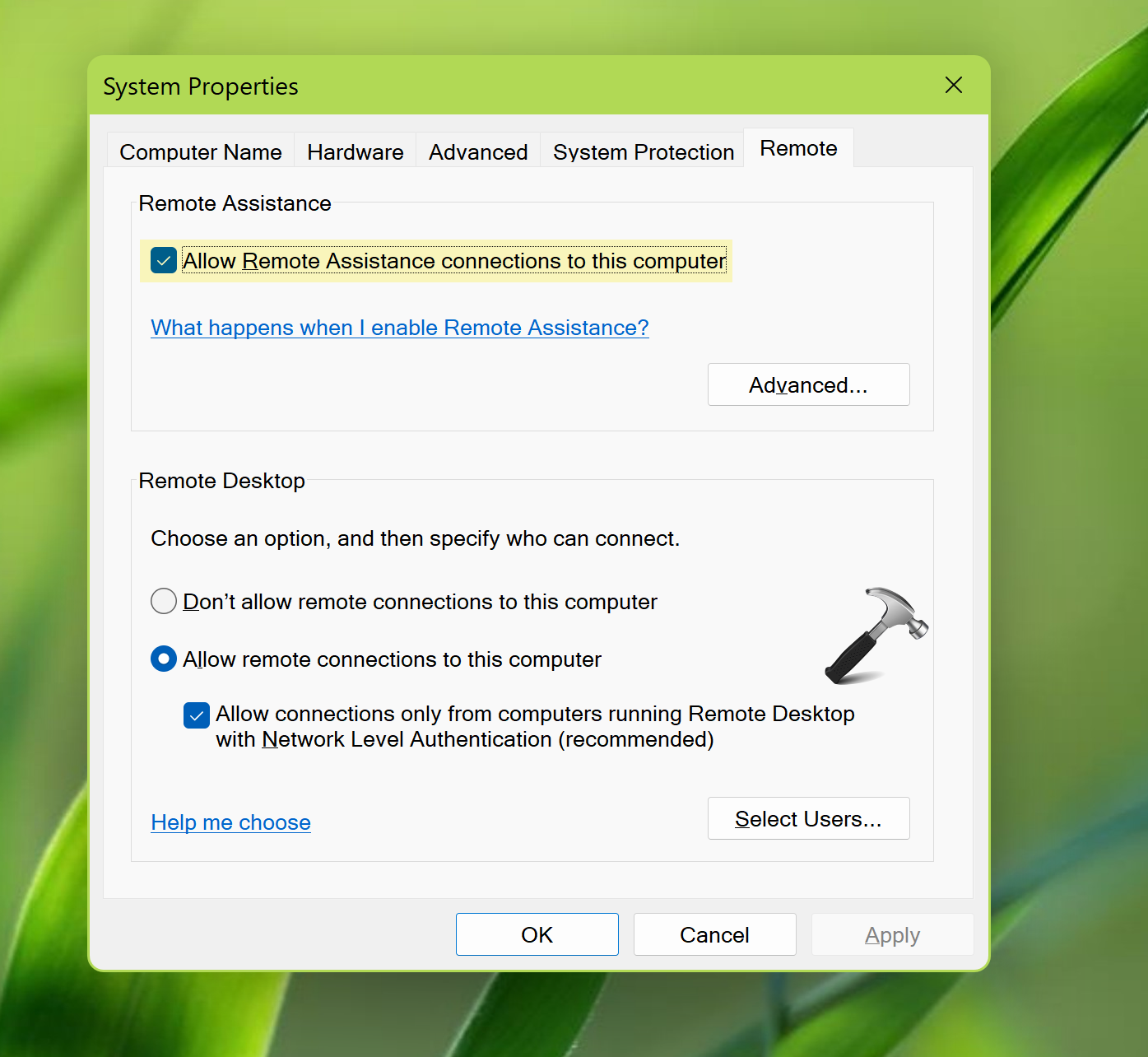 SystemPropertiesRemote.exe並單擊“確定”。 - 在“系統屬性”窗口中,檢查允許遠程協助連接到此計算機選項。