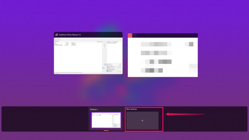 2.然後,單擊新桌面 (+) 選項單擊底部欄以創建新的虛擬桌面。