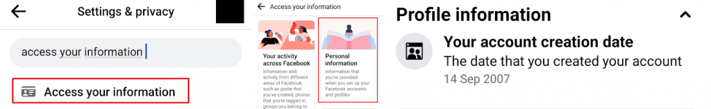 - 在下面簡介信息,您應該會看到一個標題“您的帳戶創建日期”。您加入 Facebook 的日期應位於此下方。