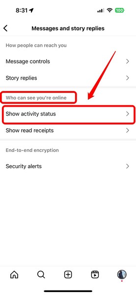 如上所述,您需要為您的 Instagram 帳戶啟用“活動狀態”功能,才能查看平台上其他用戶的活動狀態。因此,您可以按照以下步驟操作,確保您的 Instagram 帳戶的活動狀態已打開: