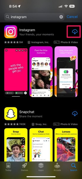 7.點擊下載按鈕在 Instagram 應用程序旁邊。