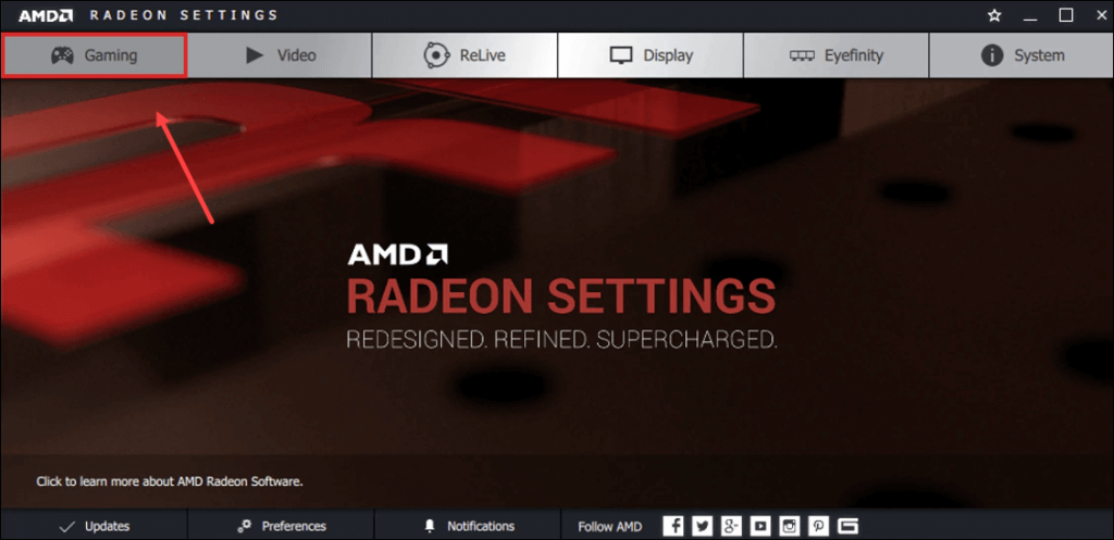 步驟 1:打開 AMD Radeon Software 並轉到“遊戲”選項卡。
