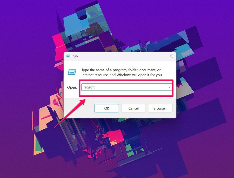 2.輸入註冊表編輯器在文本字段中,然後按 Enter。
