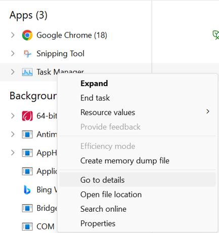 修復 Windows 任務管理器中不正確的 CPU 使用率的另一種方法是更改顯示高 CPU 使用率的進程的優先級。步驟如下: