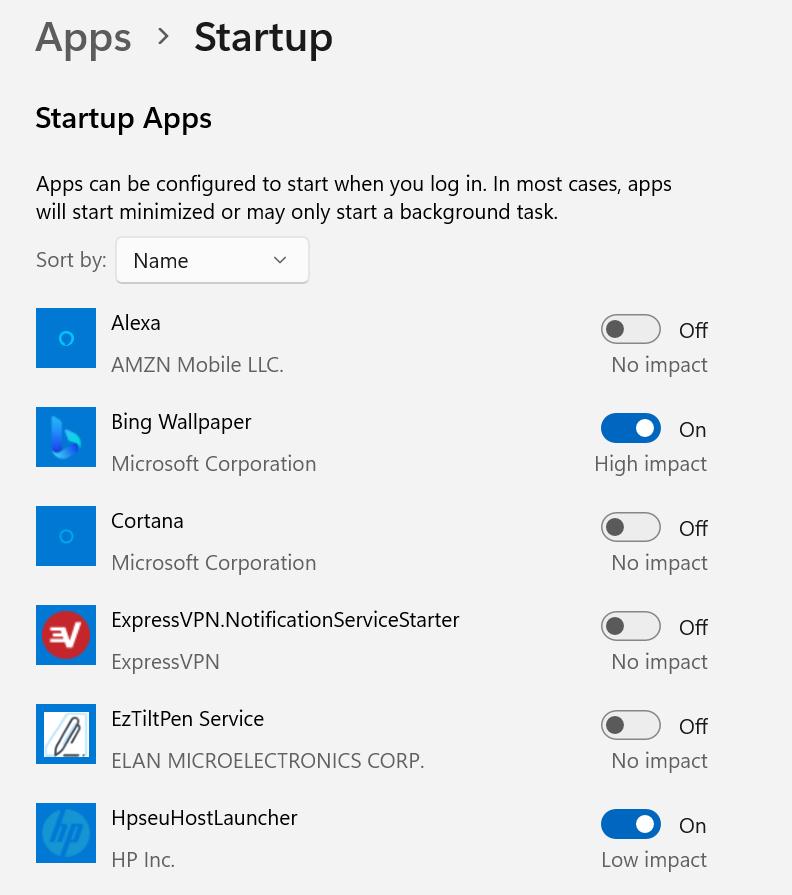 第4步:應用程序列表將出現在您的屏幕上。您可以禁用您不想在每次電腦啟動時自動啟動的應用程序的切換。