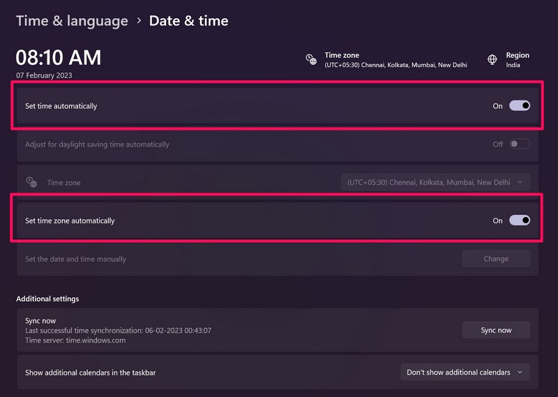 在這種情況下,您可以按照以下步驟在 Windows 11 電腦或筆記本電腦上自動設置日期和時間,並根據您當前的位置進行同步: