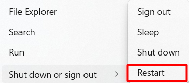 解決 Windows 11 中與鍵盤相關的問題的最常見解決方法是重新啟動計算機。如果由於設備中的一些臨時錯誤和故障而出現該問題,則這樣做可以消除該問題。因此,請重新啟動您的電腦或筆記本電腦,然後檢查是否可以解決問題。您可以查看添加的提示來了解如何輕鬆重啟Windows 11: