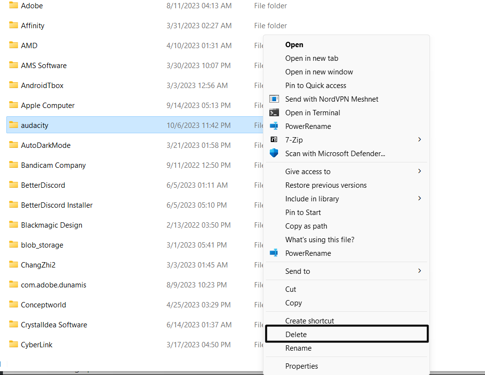 9.刪除AppData Roaming中的Audacity文件夾