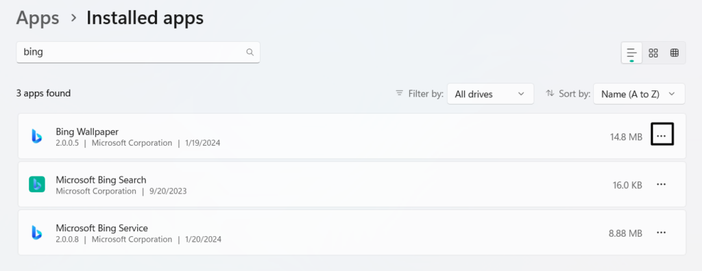 在電腦上重新安裝 Bing 壁紙應用程序之前,您需要卸載現有的應用程序。因此,請按照以下提示了解如何在 Windows 11 中卸載應用程序: