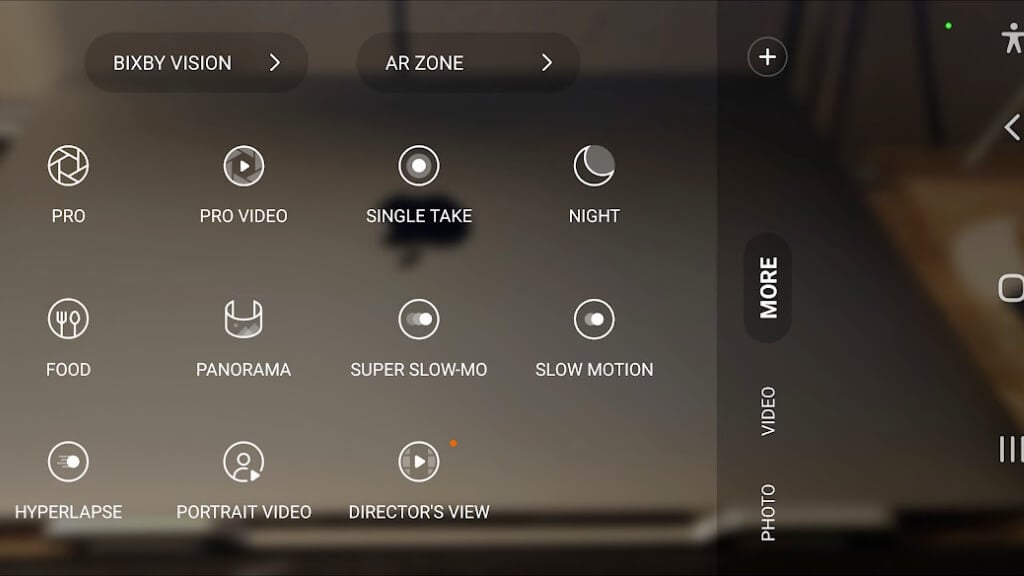 一些 Android 手機相機應用程序帶有手動或“專業”模式,使其更像操作 DSLR 相機。例如,在三星 Galaxy 手機上,您可以選擇專業模式並使用屏幕對焦輪手動設置相機設置。