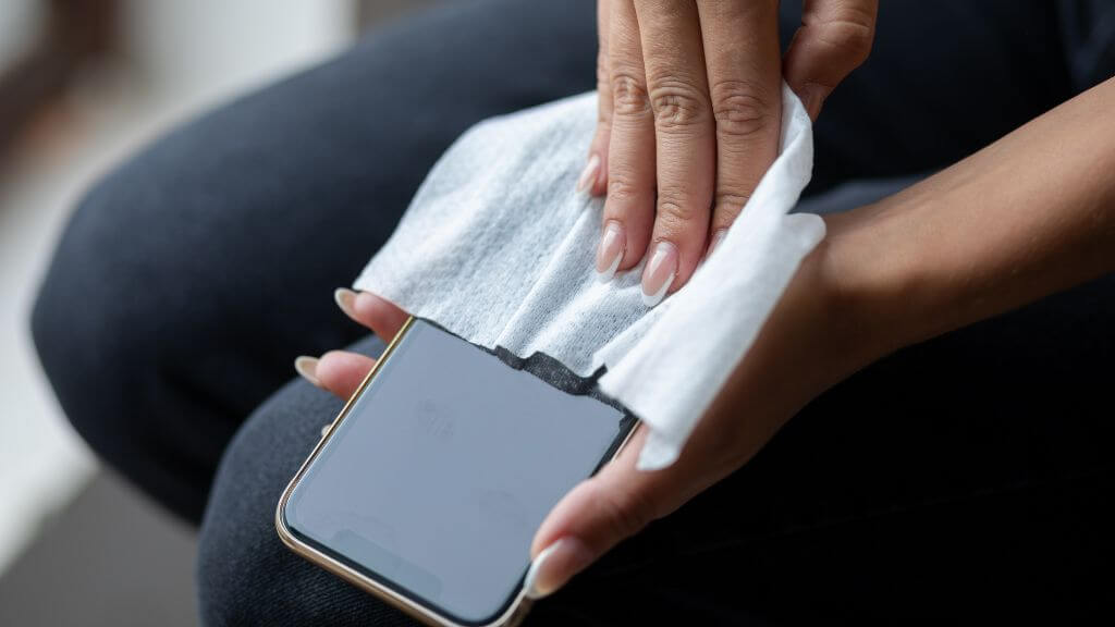 用乾淨的超細纖維布仔細擦拭手機,以消除油膩的屏幕使圖像模糊的可能性。