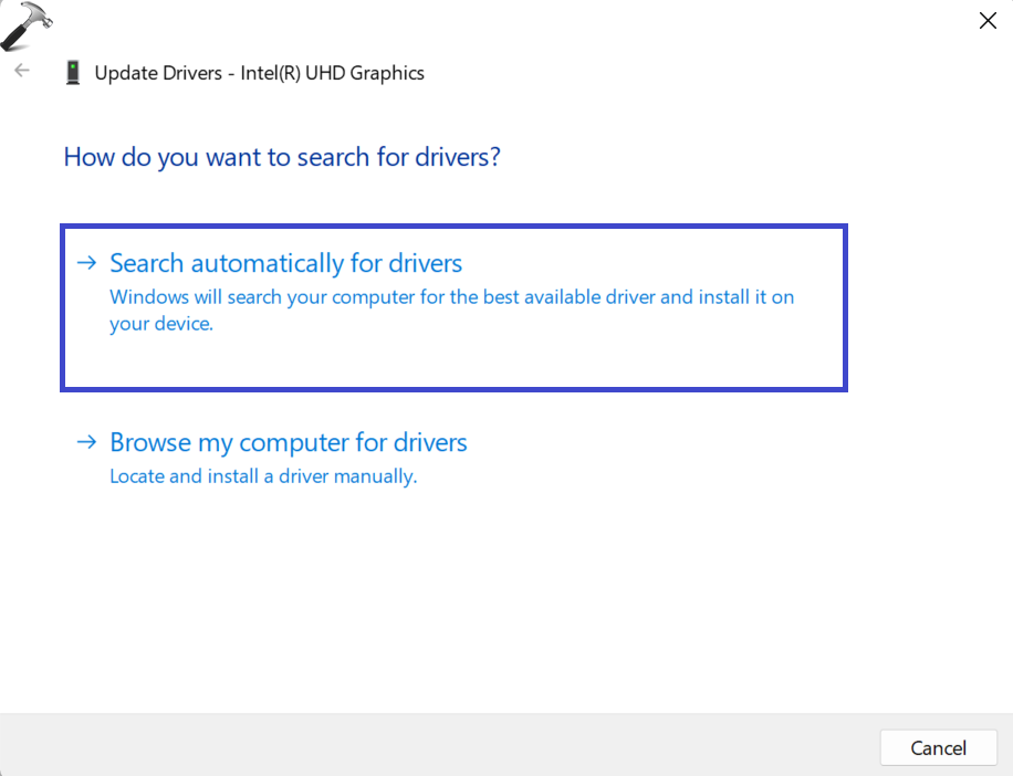 4. 在更新驅動程序窗口中,選擇“自動搜索驅動程序“ 選項。