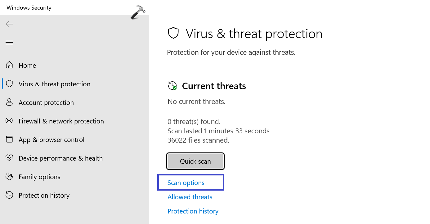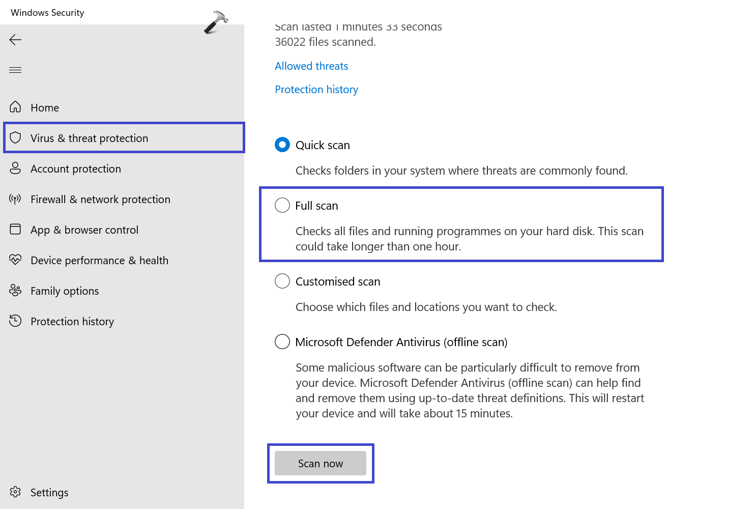 4. 選擇“全掃描”檢查您的系統的選項。此掃描可能需要一些時間,具體取決於您設備上存儲的數據。