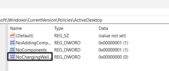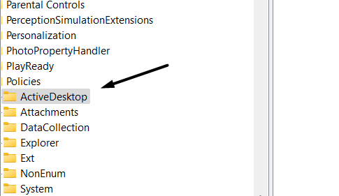 HKEY_LOCAL_MACHINESOFTWAREMicrosoftWindowsCurrentVersionPolicies3.在左側,單擊活動桌面鍵,然後右鍵單擊面板右側。