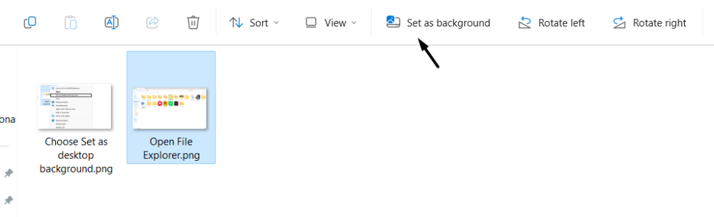 2.選擇圖像,然後單擊設置為背景在頂部菜單中更改壁紙。