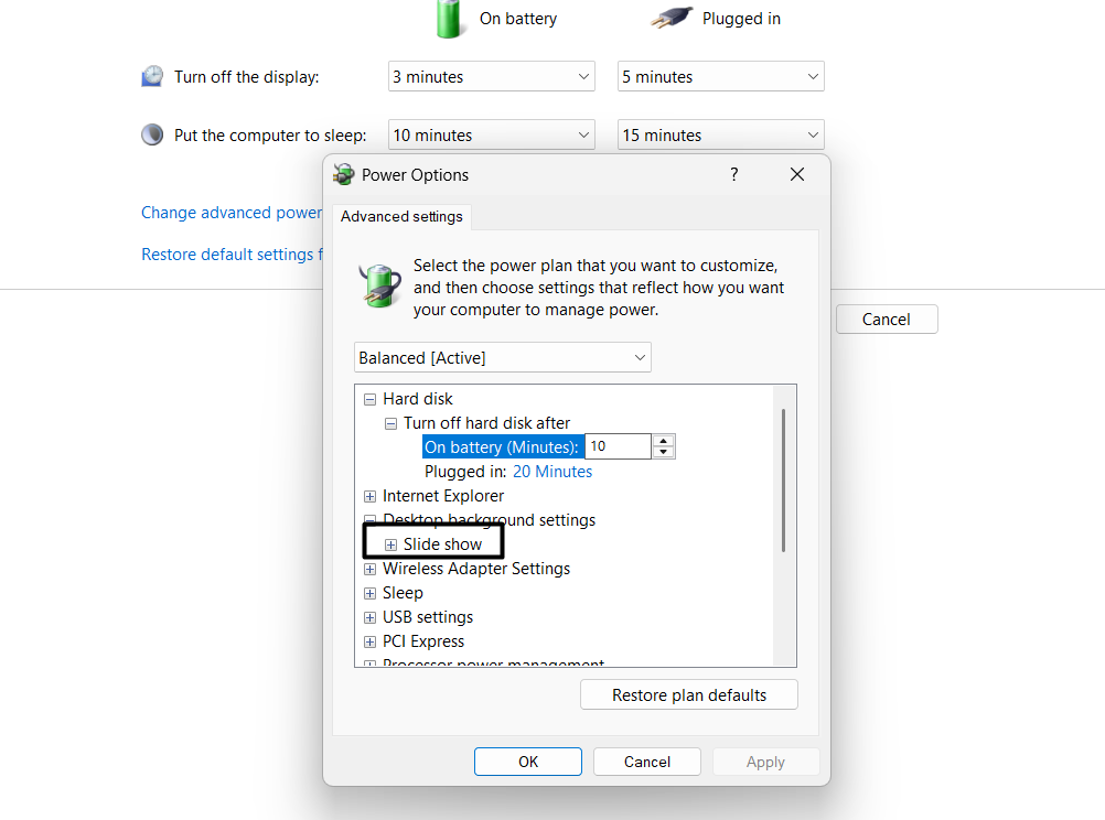 在線論壇中的一些用戶表示,更改系統的電源選項解決了他們的問題。具體來說,他們做了更改計算機的桌面背景設置。您也可以嘗試一下,看看它是否適合您。我們已經提到了以下步驟,因此請按照這些步驟操作並擺脫無法更改背景的問題: