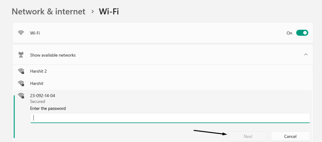 您可以按照下面列出的步驟在 Windows 11 中手動連接到 Wi-Fi 網絡: