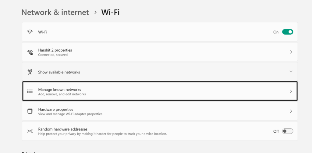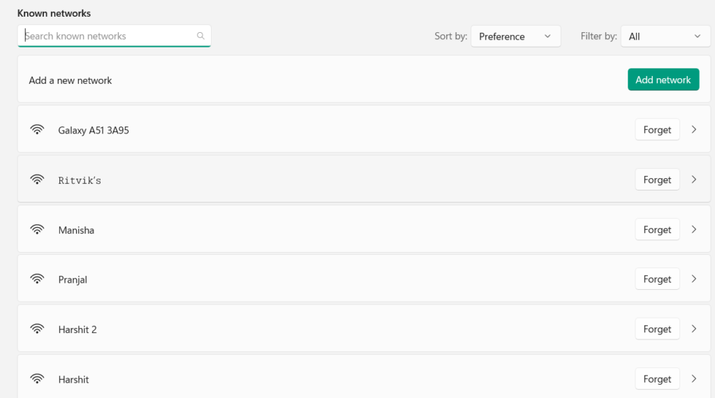 如果重新啟動 Wi-Fi 無法解決問題,請考慮將您的電腦重新連接到 Wi-Fi。此外,您需要首先從電腦中刪除保存的網絡。您可以檢查以下步驟來了解如何將 Windows 11 計算機重新連接到 Wi-Fi 網絡: