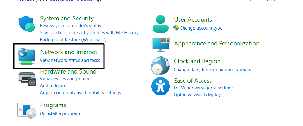 1.打開控制面板實用程序在您的 Windows 11 電腦上,然後轉至網絡和互聯網。