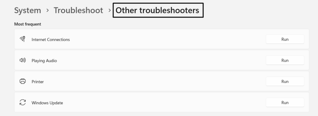 3.在其他疑難解答窗戶下,在最常見的, 尋找網絡和互聯網。