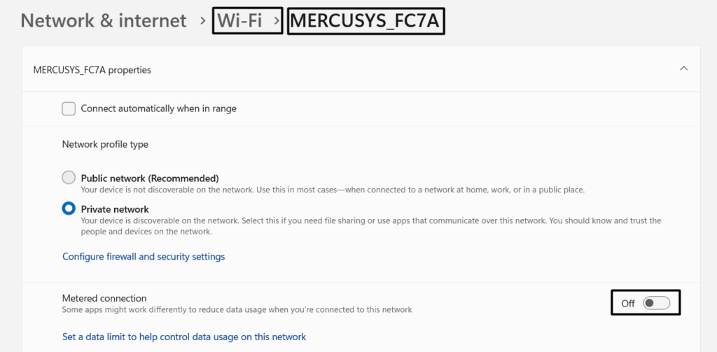 “無法連接到此網絡”錯誤的一個常見原因是已啟用按流量計費的連接。因此,您遇到問題的網絡可能啟用了該選項,這就是出現此問題的原因。因此,請按照以下步驟禁用它: