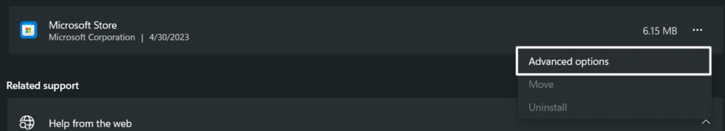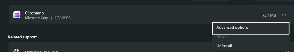 3.單擊三點 (...)在它旁邊,然後選擇高級選項從菜單中。