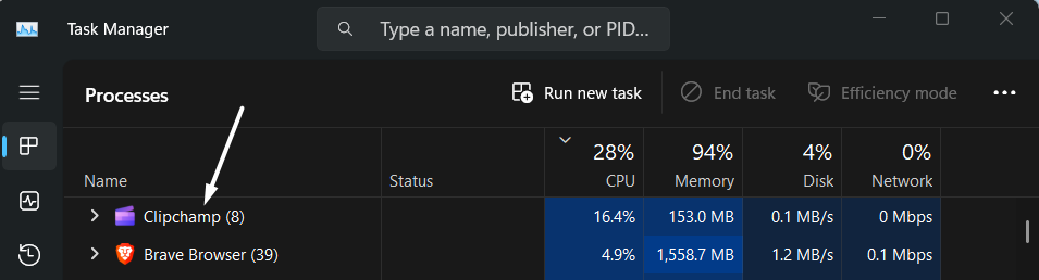 系統後台運行的程序可能會阻止 Clipchamp 應用程序打開。要檢查是否相同,我們建議您關閉所有不必要的程序從系統後台查看問題的狀態。按照列出的步驟使用任務管理器應用程序關閉不必要的應用程序: