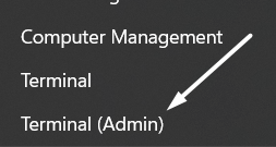 1.右鍵單擊開始菜單並選擇任務欄上的終端(管理員)從中選擇。