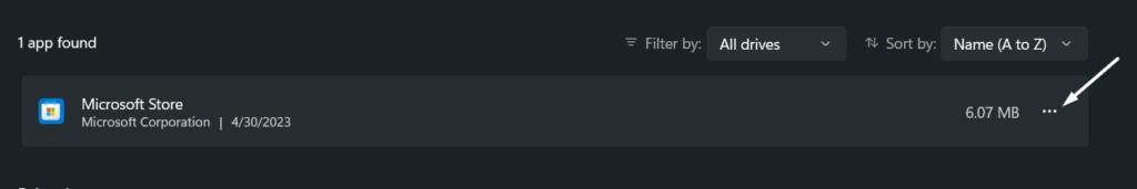 2.搜尋微軟商店在應用程式部分並單擊三個點 (……)在它旁邊。