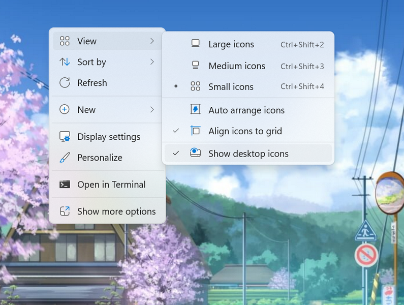 在 Windows 11 設備上啟用“顯示桌面圖標”後,您應該能夠在主屏幕上看到桌面圖標。