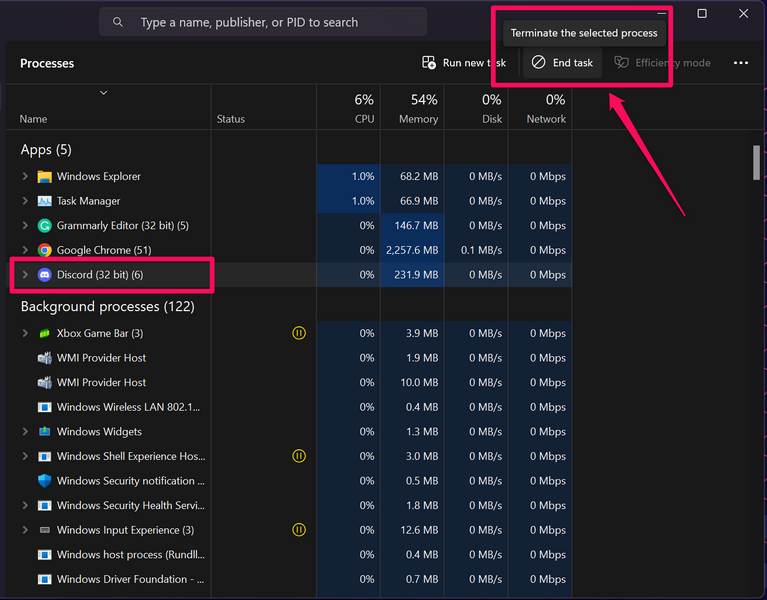 現在,當您遇到 Discord 搜索不起作用問題時,您可以嘗試的第一件事是強制關閉 Discord 應用程序,然後在 Windows 11 電腦或筆記本電腦上重新啟動它。當您在 Windows 11 設備上打開許多應用程序或程序以及 Discord 應用程序時,其某些功能有時可能會出現故障。