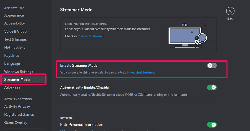6. 在 Windows 11 上禁用 Discord 應用程序中的 Streamer 模式