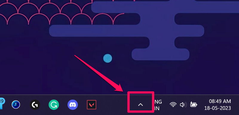 1.當 Discord 應用程序在後台運行時,單擊 Windows 11 任務欄上的系統托盤箭頭以打開托盤。