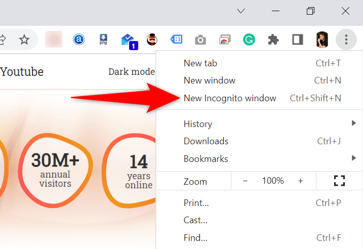 - 打開鉻合金,選擇右上角的三個點,然後選擇新的隱身窗口。