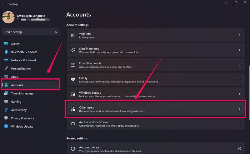 因此,請按照以下步驟在 Windows 11 中創建新的 Windows 用戶帳戶:
