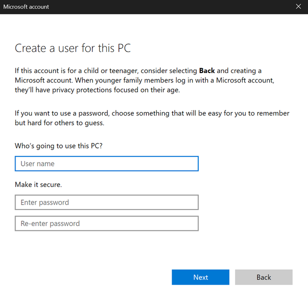 6.現在,提供必要的信息和按照屏幕上的說明進行操作在您的 PC 或筆記本電腦上創建新的 Windows 用戶帳戶。