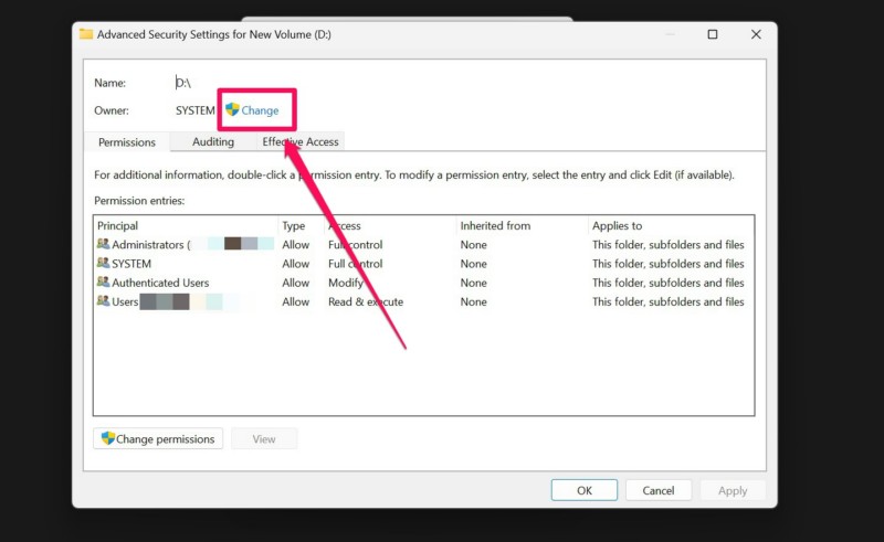 5.在接下來的窗口中,單擊更改按鈕旁邊的業主姓名。