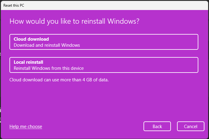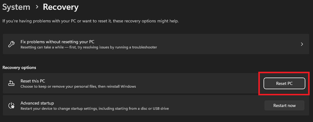 重置系統可以解決此問題。執行此操作之前,請備份文件、照片和其他媒體。因此,如果出現任何問題,您的寶貴數據都是安全的,請注意,重新安裝後,您需要從頭開始設置您的電腦。備份完所有內容後,您可以按照以下步驟在電腦上重新安裝 Windows 11。