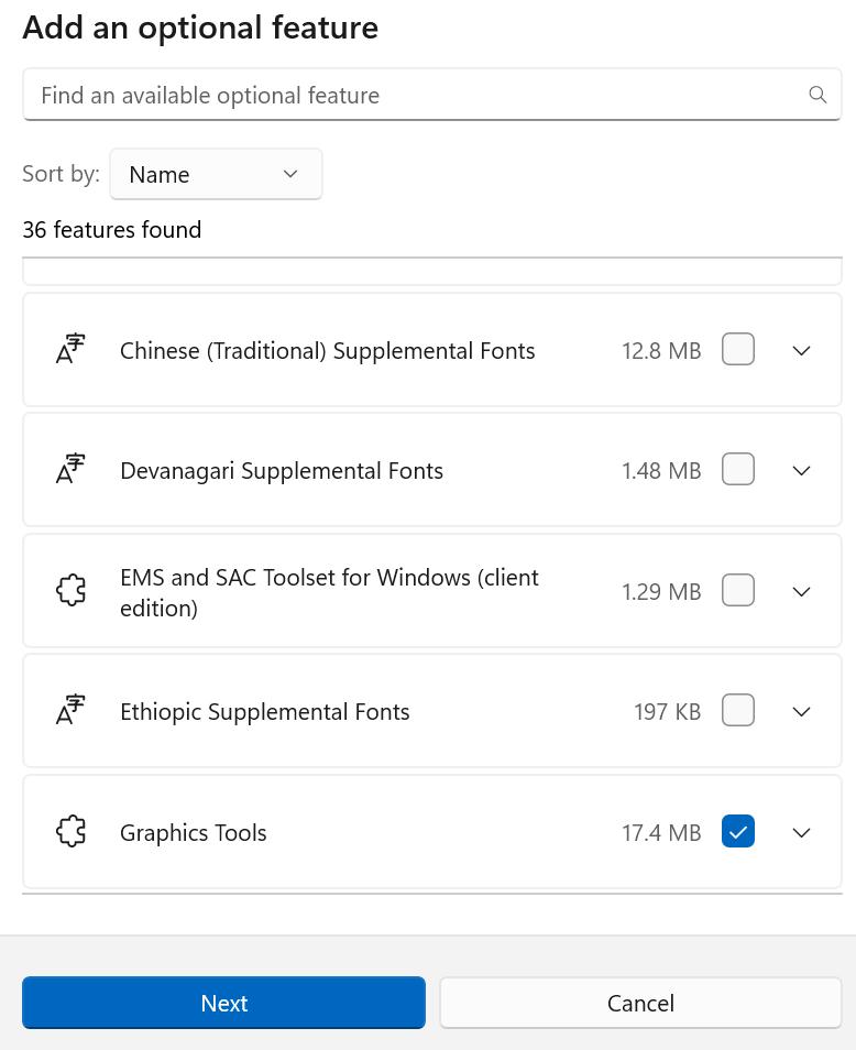 第5步:類型媒體功能包並選擇旁邊的複選框。