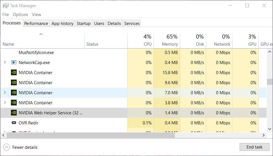 第 6 步:在流程選項卡,找到所有英偉達任務在後台運行,然後單擊結束任務在每個過程上。