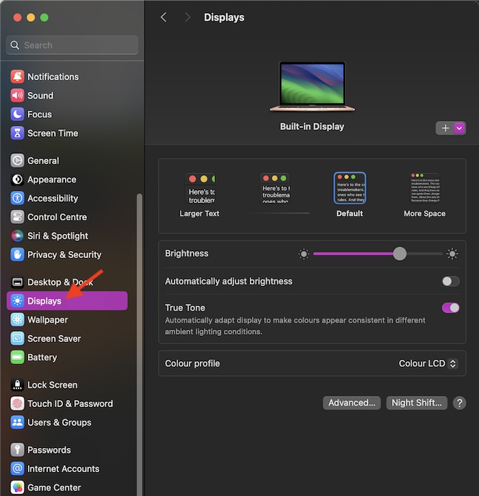 - 前往蘋果菜單屏幕左上角 -> 選擇系統設置->顯示。