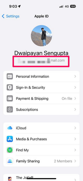 3. 查看您姓名下的電子郵件 ID並牢記在心。這是您當前用於登錄 iCloud 帳戶的主要 Apple ID。
