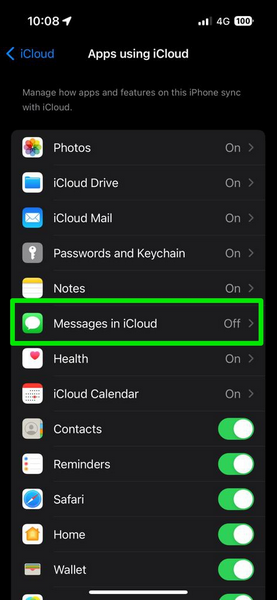 5.在這裡,點擊iCloud 中的消息列表中的選項。