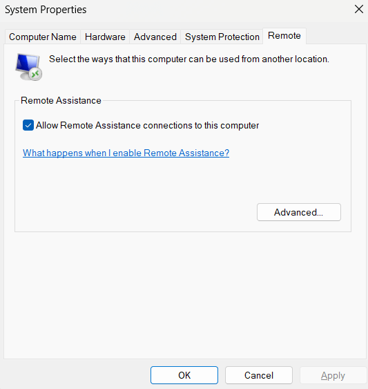 步驟2:屏幕上現在將出現“系統屬性”窗口。切換到“偏僻的”選項卡。檢查“允許遠程連接”選項,以防其被禁用。