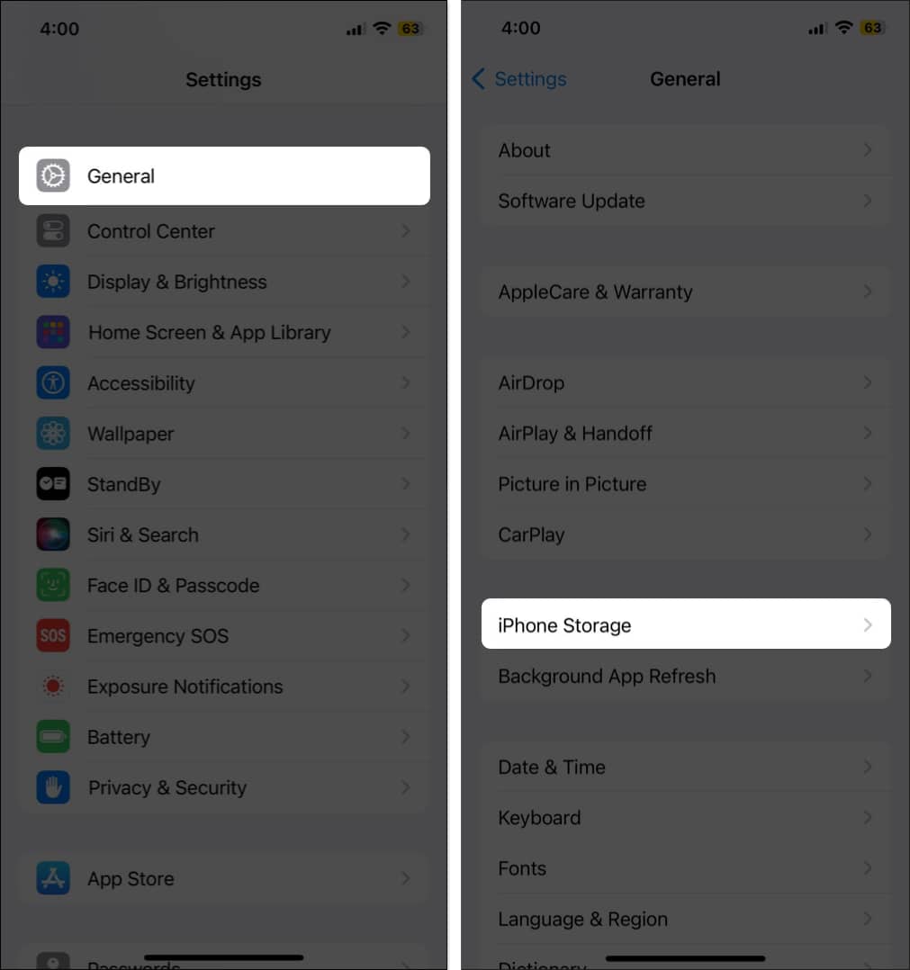 這可能是由於應用程序安裝過多、視頻和照片文件過多等原因造成的。要檢查您的 iPhone 或 iPad 存儲空間,請轉至設定→一般的→iPhone存儲。