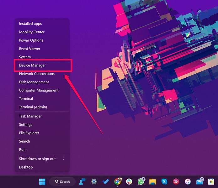 1.打開裝置經理在 Windows 11 中,如之前的修復中所述(修復#7)。